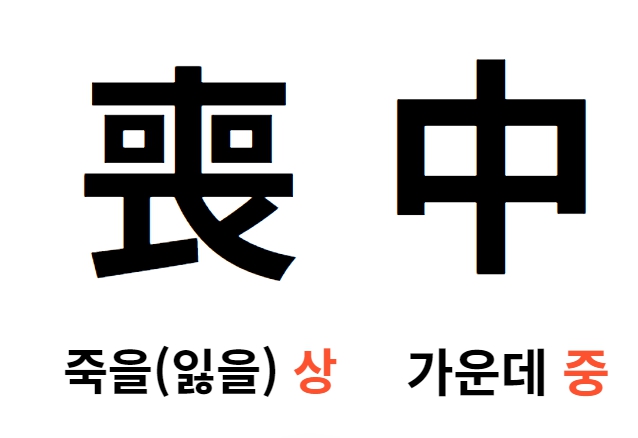 상중을 한자로 풀이하면 죽을(잃을) 상 喪, 가운데 중中 로 쓰입니다.