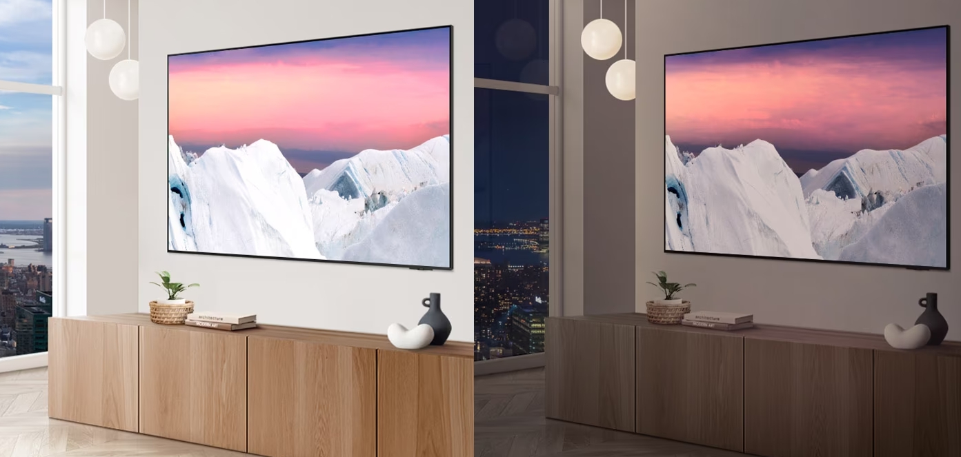 생활 공간의 밝기에 최적화된 화면을 제공하는 아이 컴포트 모드. 낮과 밤에 따라 화면 밝기와 색상을 알맞게 조절하여 편안한 시청을 도와줍니다.